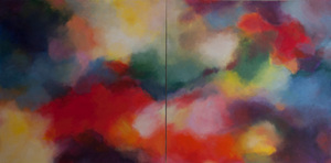 Deze werken zijn gemaakt samen met Ineke Graamans. Tegelijkertijd werkten we om elkaar heen draaiend aan één schilderij, vandaar deze naam.
